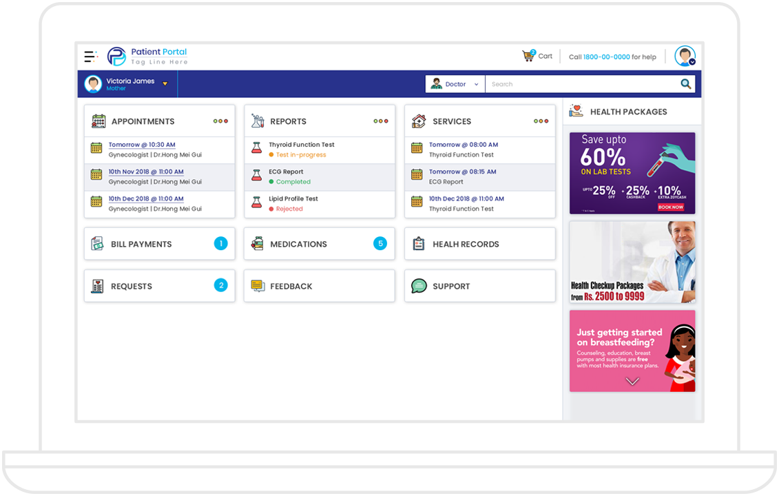 No standing in long queues - Patient portal provides online registration and payment facilities which means patients no longer have to wait in long queues for registration or paying their bills.